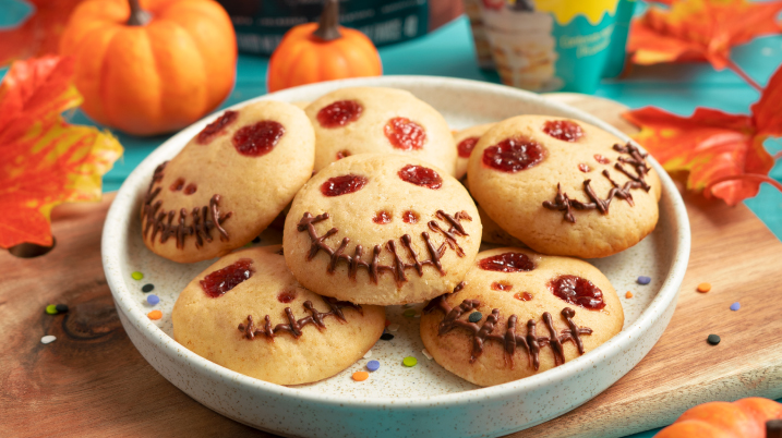 🔟 Derrite chocolate Luker, ponlo en una manga pastelera y decora las galletas dibujando esqueletos o caritas espeluznantes.